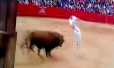Dans une arène en Espagne, un homme devait sauter par-dessus d’un taureau. Mais sa tentative digne d’un sketch a surtout loupé et notre Régis s’est retrouvé KO après avoir fait une belle pirouette ! Je lui attribue la no...