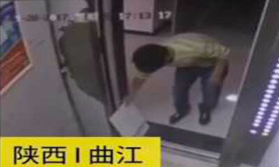 Aujourd’hui est parti en chine pour travailler comme employé de technicien de surface. Son job est de nettoyer les allées d'immeubles et alors qu’il souhaite bloquer la porte d’un ascenseur, il utilise une dalle de béton...