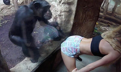 Si dans les zoos les chimpanzés peuvent vous envoyer du caca au visage, certains sont particulièrement plus intéressé par les jeunes femmes. C’est le cas de ce singe qui à la vue d’une guenon bouger son cul contre la vit...