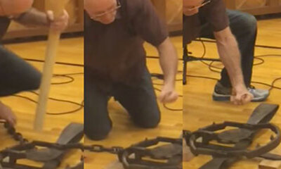 Ce régis aurait pu finir dans Les galères de Régis ! Abruti comme un gland, il a voulu montré le déclenchement d’un piège à ours à des personnes et s’est dit qu’il allait le faire avec sa main. Ben oui, pourquoi s’embête...