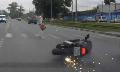 En Russie, une jeune femme qui traverse la route sur un passage piéton vient se faire balayer et éjecter au sol par une moto. Apriori le motard a chuté plus haut et la moto a continué sa route pour venir heruter la pauvr...