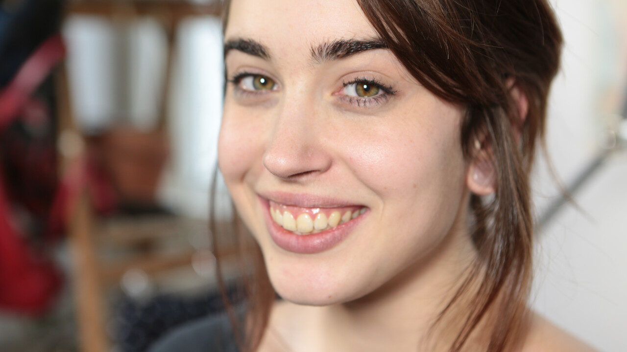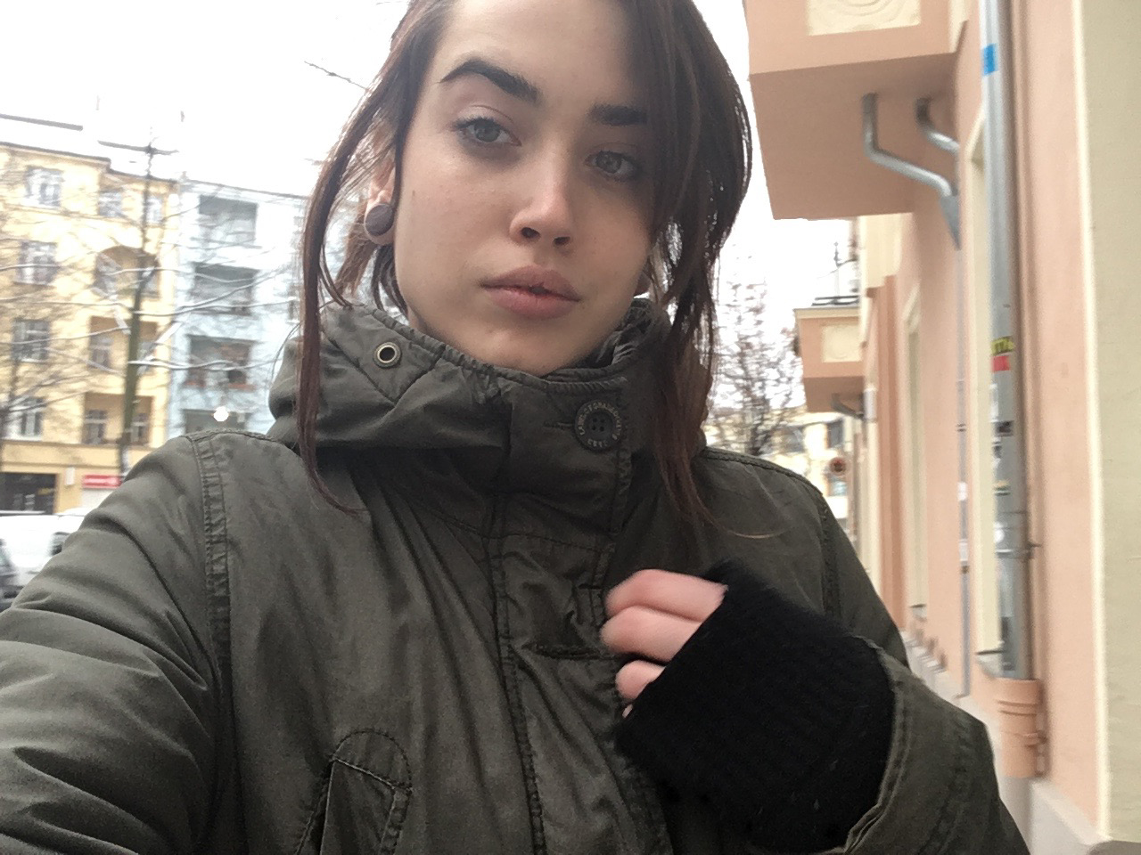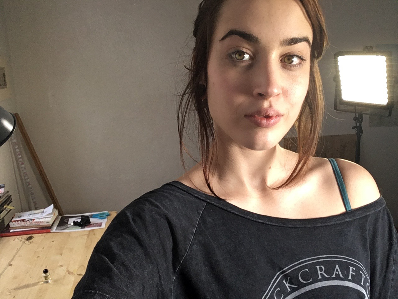 Une amatrice sexy aux yeux verts magnifiques se dénude complètement et montre ses petits seins et son magnifique tatouage.