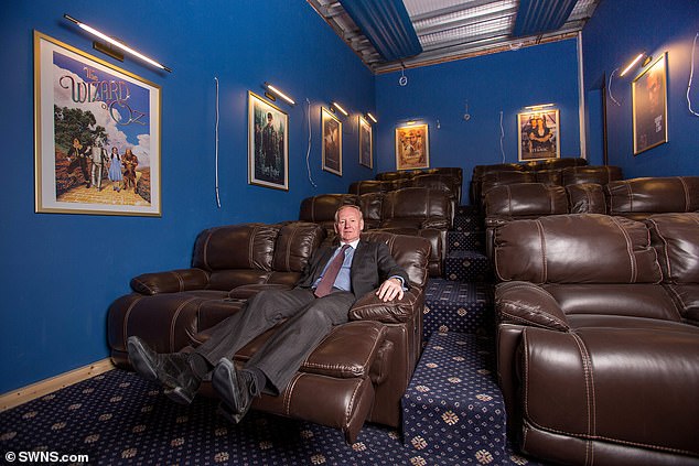 M. Wildin est photographié en train de se prélasser dans la salle de cinéma située dans l'énorme extension