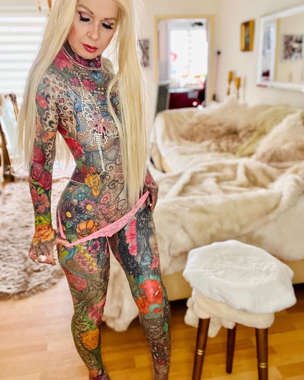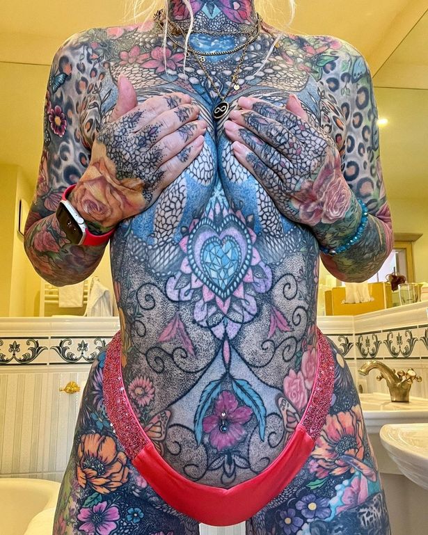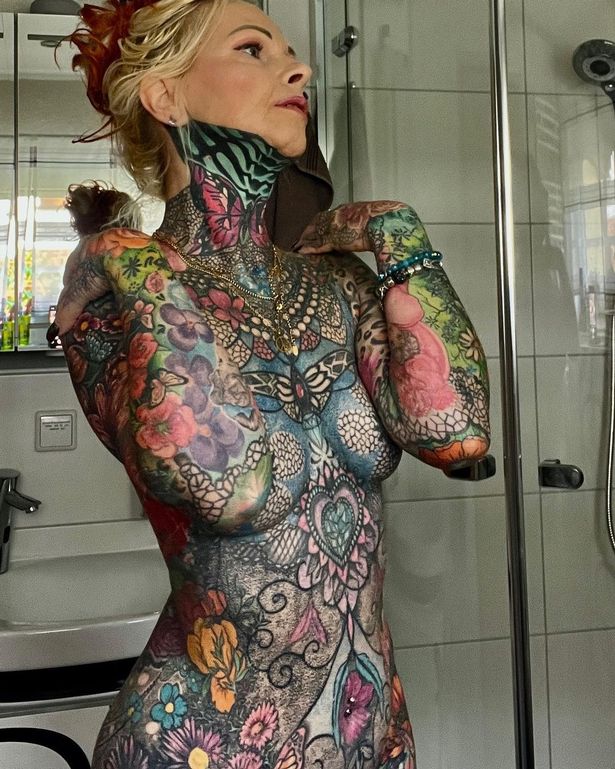 Une Allemande de 56 ans, Kerstin Tristan (dont Yuki avait déjà parlé ici), a récemment posté une photo d'elle seins nus sur les médias sociaux pour montrer ses tatouages sur tout le corps. Ses tatouages comprennent des pendentifs en forme de cœur sur sa poitrine, des motifs floraux sur son ventre et des motifs géométriques sur ses seins. La photo a reçu de nombreux commentaires positifs de la part des fans qui ont salué ses tatouages uniques et sa beauté. Kerstin s'est fait tatouer pour la première fois il y a dix ans et a depuis dépensé des milliers de dollars pour se faire entièrement encrer. Elle se sent désormais beaucoup plus sûre d'elle et adore son look coloré.